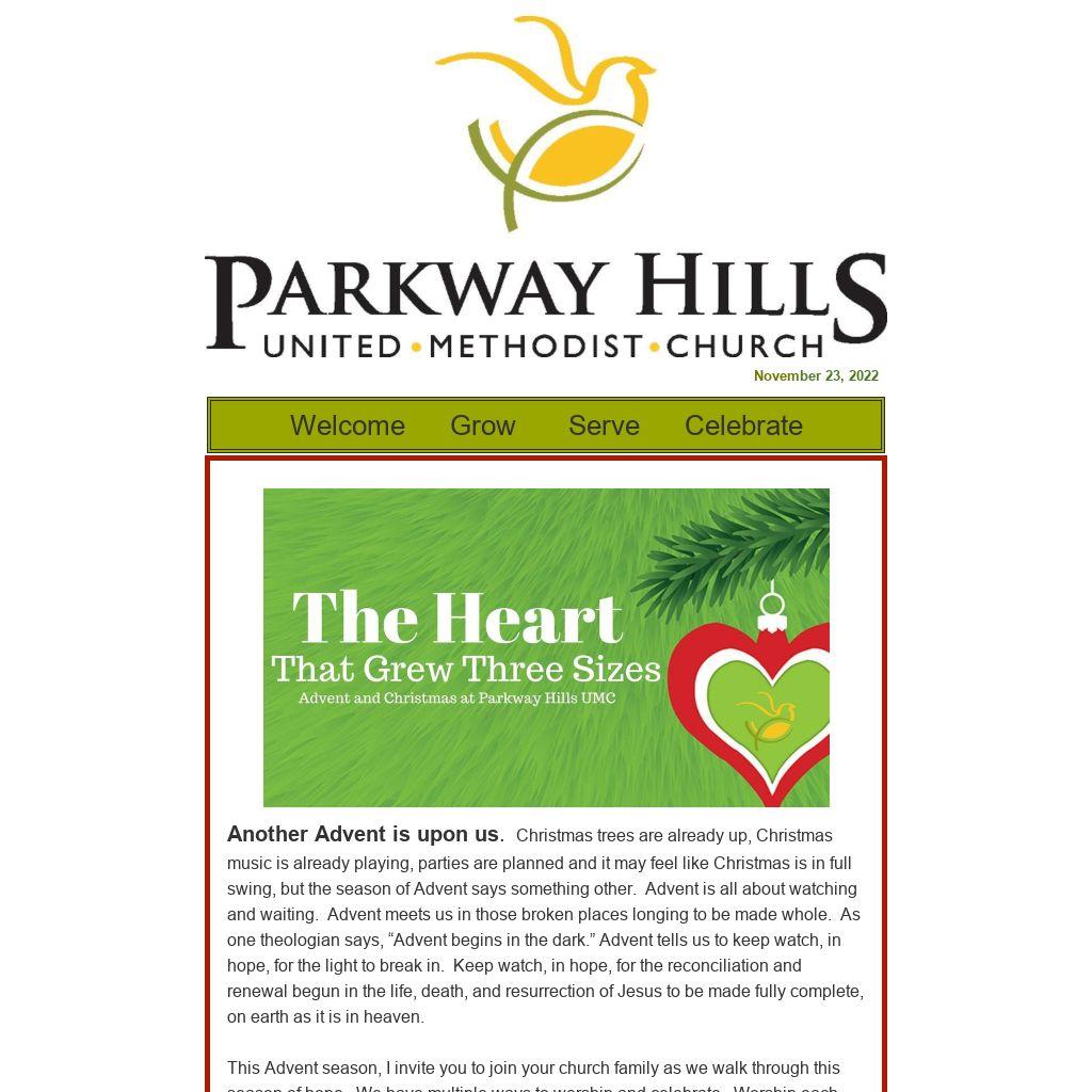 May we all journey through this season together in worship, in study and reflection, and in celebration. See you at Parkway Hills and invite a friend!