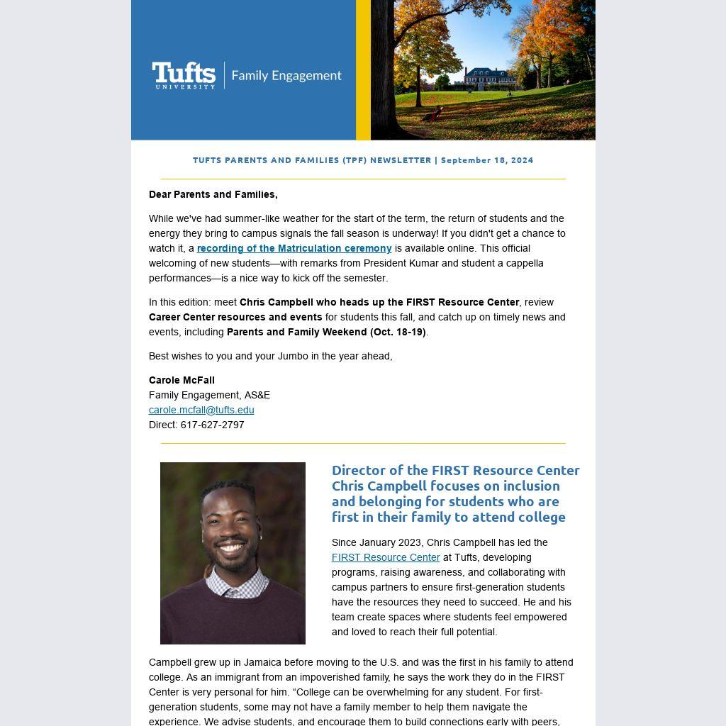 TUFTS PARENTS AND FAMILIES (TPF) NEWSLETTER | September 18, 2024