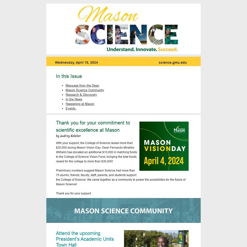 Thank you for your commitment to scientific excellence at Mason by Audrey Kelaher