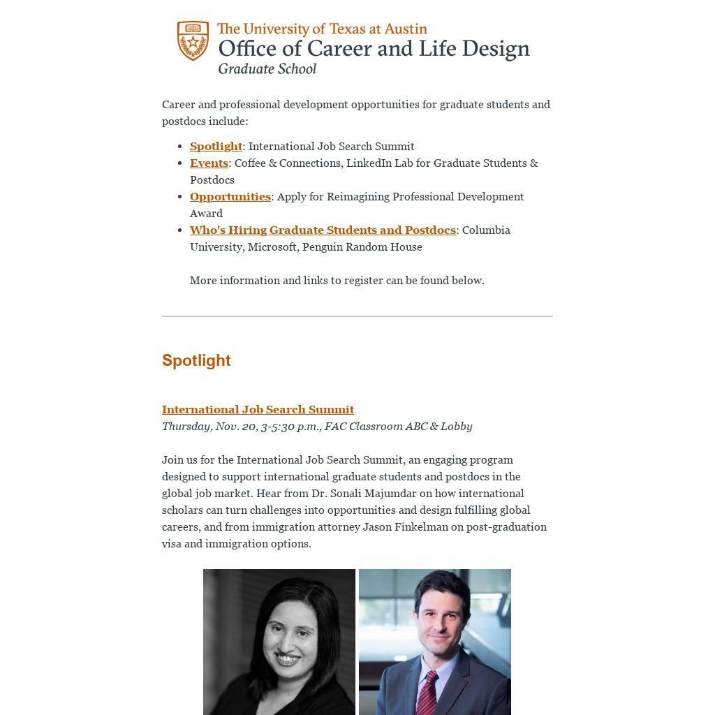 International Job Search Summit Thursday, Nov. 20, 3-5:30 p.m., FAC Classroom ABC & Lobby