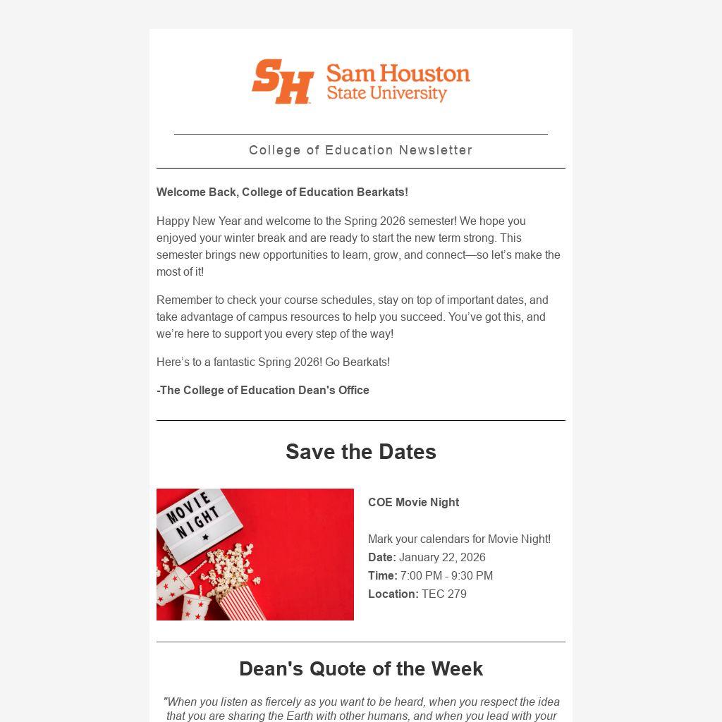 Welcome Back, College of Education Bearkats!
