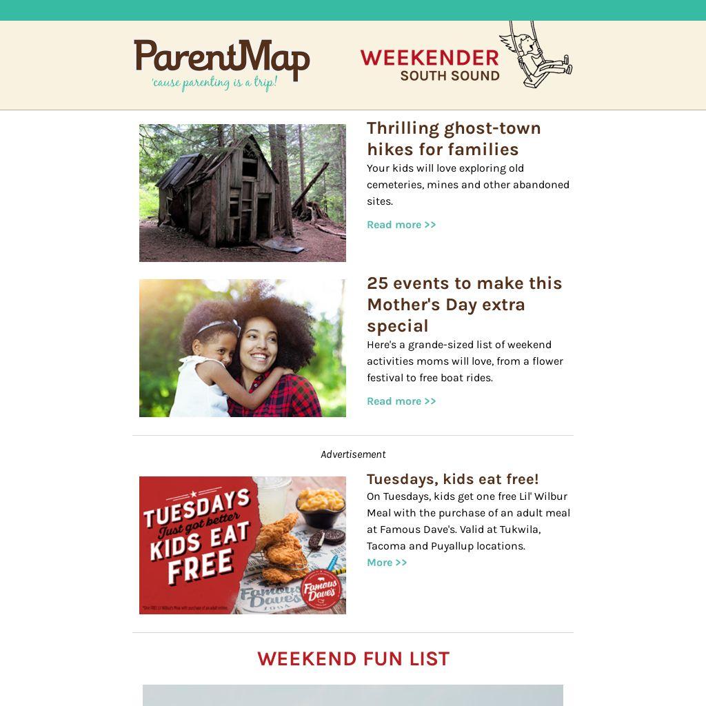 On Tuesdays, kids get one free Lil' Wilbur Meal with the purchase of an adult meal at Famous Dave's. Valid at Tukwila, Tacoma and Puyallup locations.