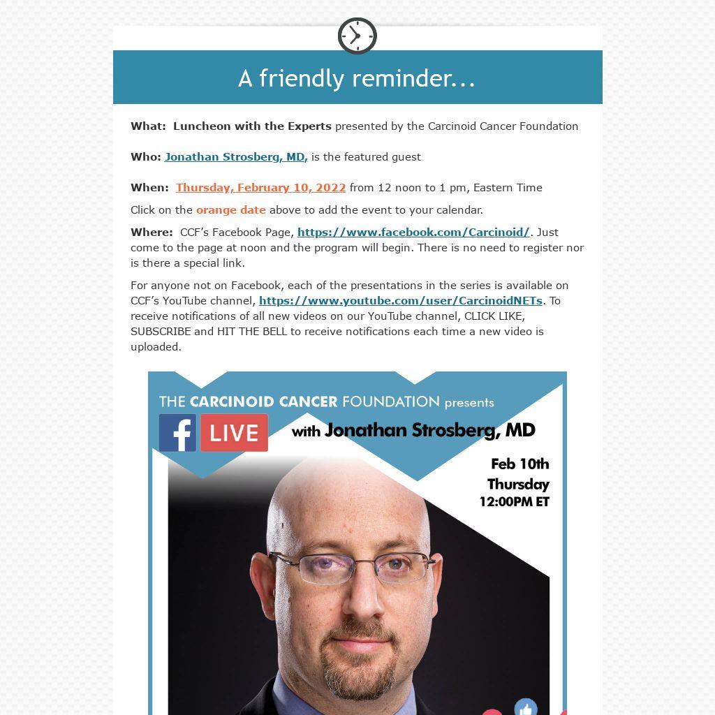 Jonathan Strosberg, MD, medical oncologist, is Section Head of the Neuroendocrine Tumor Division and Chair of the Gastrointestinal Department Research Program at the Moffitt Cancer Center in Tampa, Florida. His clinical interest centers on neuroendocrine cancer, specifically carcinoid tumors and pancreatic endocrine (islet cell) tumors. His research focus includes the development of novel biomarker-driven therapeutic treatments. Collaborative research has led to the identification of new molecular prognostic markers associated with malignant progression of pancreatic neuroendocrine tumors. His data on the treatment of metastatic pancreatic endocrine tumors with the novel combination of capecitabine and temozolomide was internationally recognized.