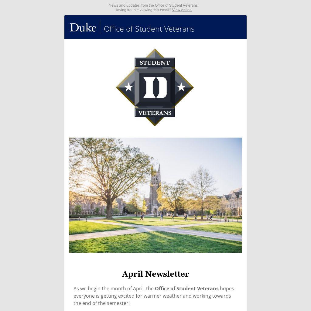 As we begin the month of April, the Office of Student Veterans hopes everyone is getting excited for warmer weather and working towards the end of the semester!