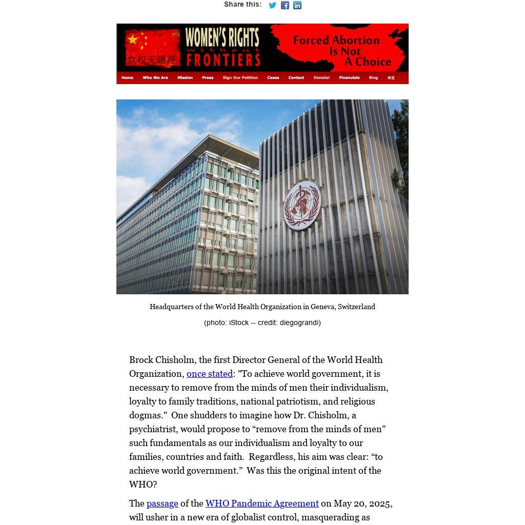 Your donation enables Women's Rights Without Frontiers to continue to be a voice against the export of Chinese-style totalitarianism.  We are resisting the Great Reset, the New World Order and Global Governance.  We also save babies and widows in China.  These huge efforts come at a cost.  We need your support. Please give as generously as you can.  Every donation makes a difference!