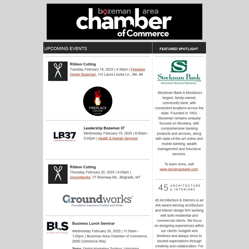 Wednesday, February 26, 2025 | 11:30am - 1:00pm | Bozeman Area Chamber of Commerce, 2000 Commerce Way