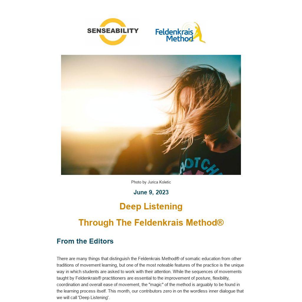 There are many things that distinguish the Feldenkrais Method® of somatic education from other traditions of movement learning, but one of the most noteable features of the practice is the unique way in which students are asked to work with their attention. While the sequences of movements taught by Feldenkrais® practitioners are essential to the improvement of posture, flexibility, coordination and overall ease of movement, the "magic" of the method is arguably to be found in the learning process itself. This month, our contributors zero in on the wordless inner dialogue that we will call 'Deep Listening'.