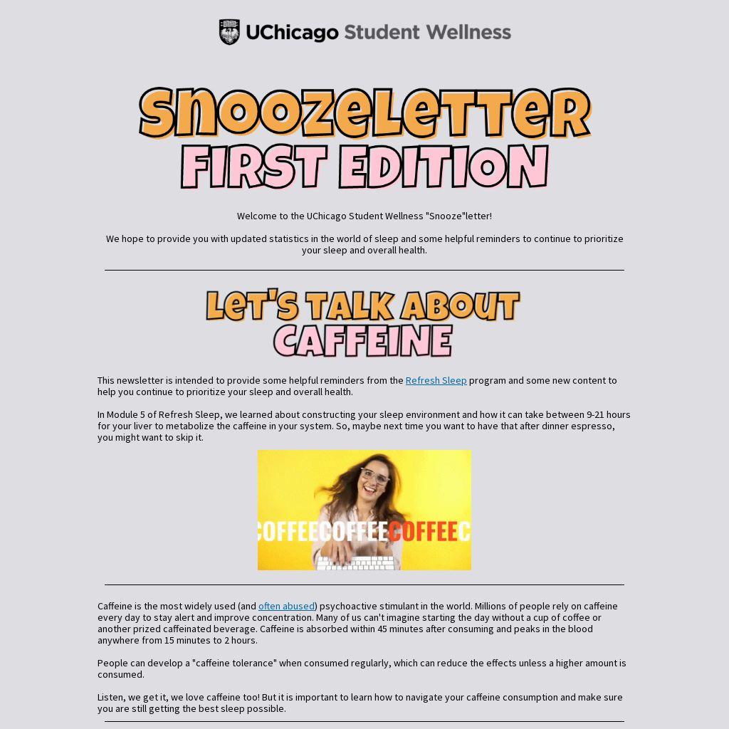 Welcome to the UChicago Student Wellness "Snooze"letter!