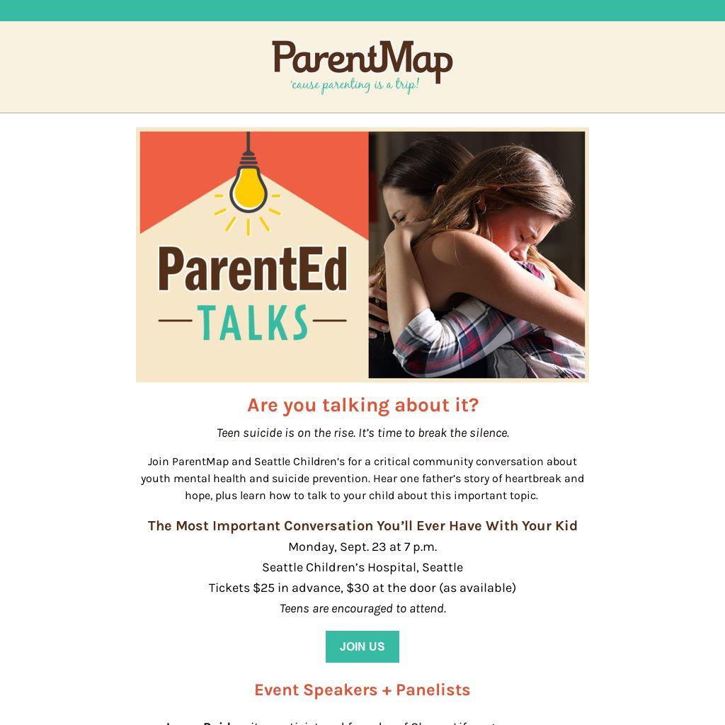Join ParentMap and Seattle Children’s for a critical community conversation about youth mental health and suicide prevention. Hear one father’s story of heartbreak and hope, plus learn how to talk to your child about this important topic.
