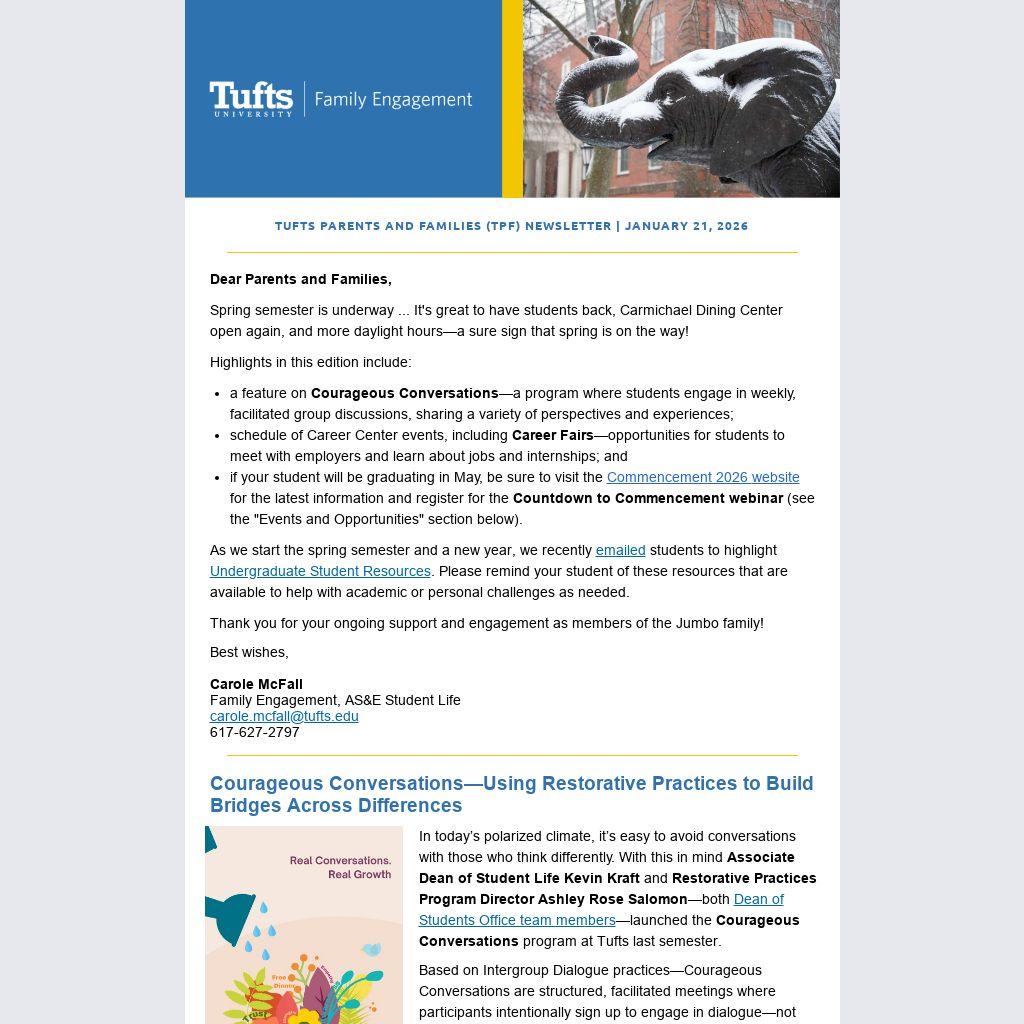 TUFTS PARENTS AND FAMILIES (TPF) NEWSLETTER | JANUARY 21, 2026