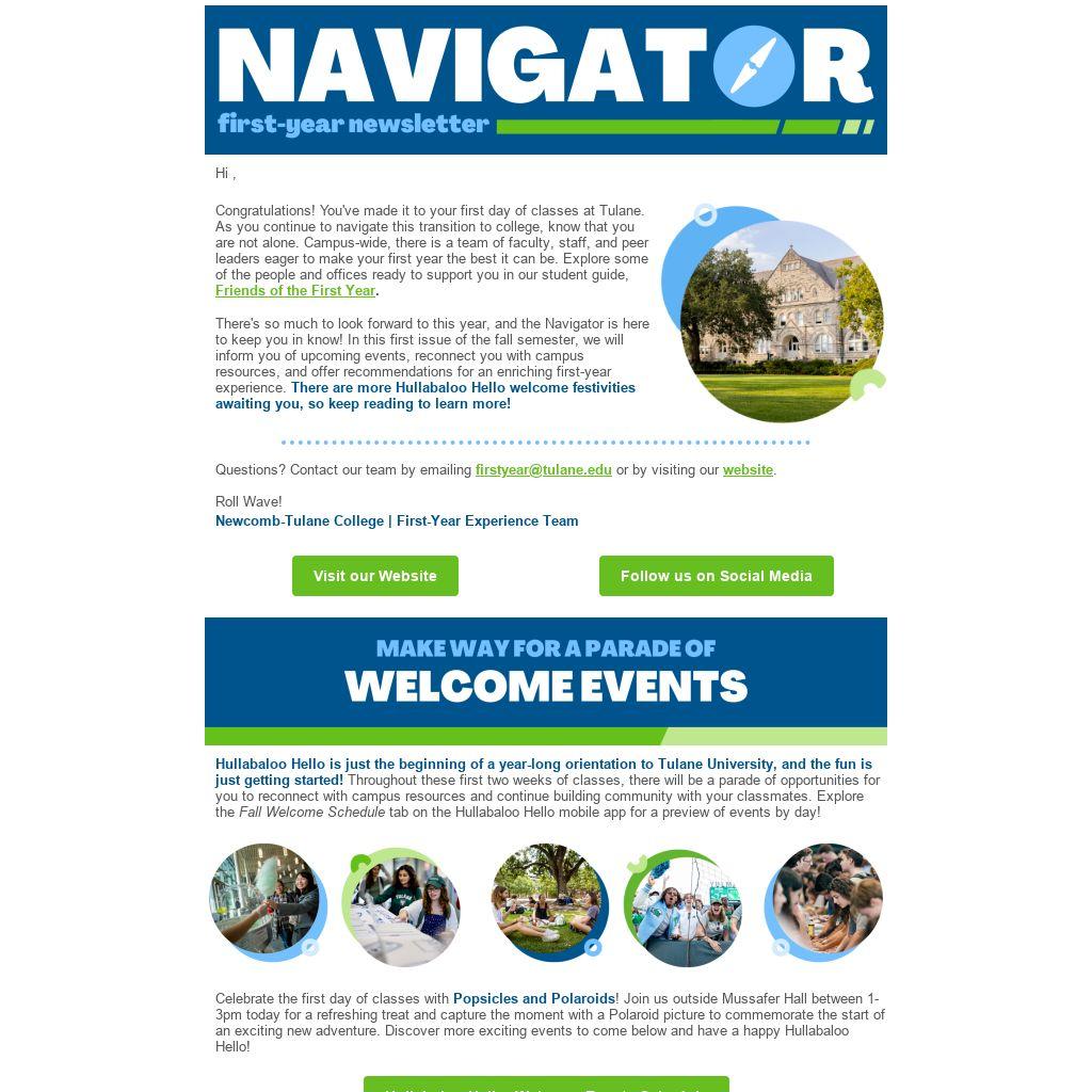 There's so much to look forward to this year, and the Navigator is here to keep you in know! In this first issue of the fall semester, we will inform you of upcoming events, reconnect you with campus resources, and offer recommendations for an enriching first-year experience. There are more Hullabaloo Hello welcome festivities awaiting you, so keep reading to learn more!