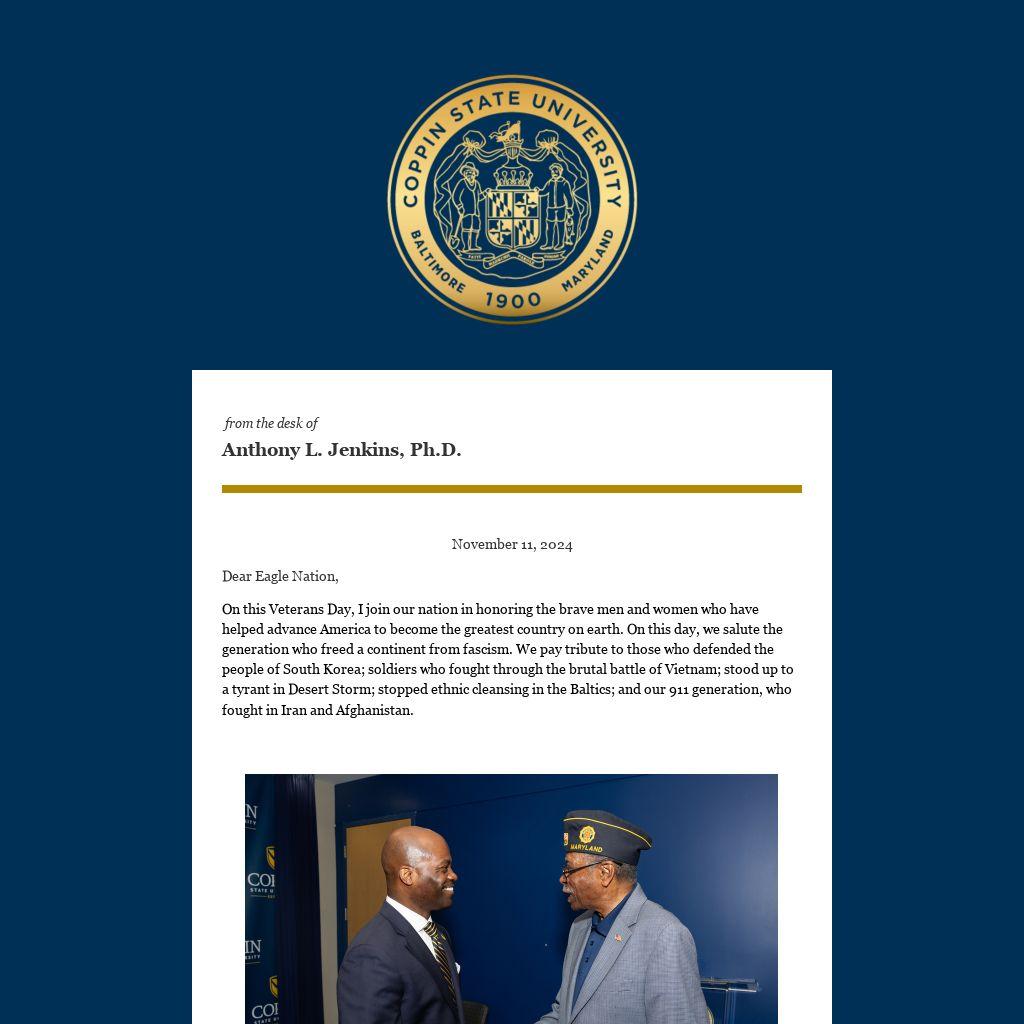 I am proud to be a part of a special fraternity. Currently, I am one of less than a dozen sitting college or university presidents, in our nation, who have served in the military. Since arriving at Coppin, I have focused on growing our ROTC program, which now enrolls the highest number of cadets in our university's history.