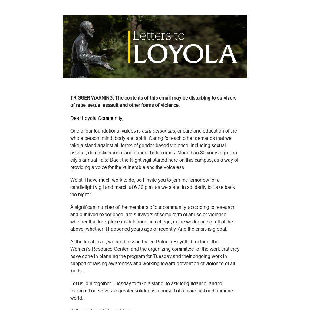 Dear Loyola Community,