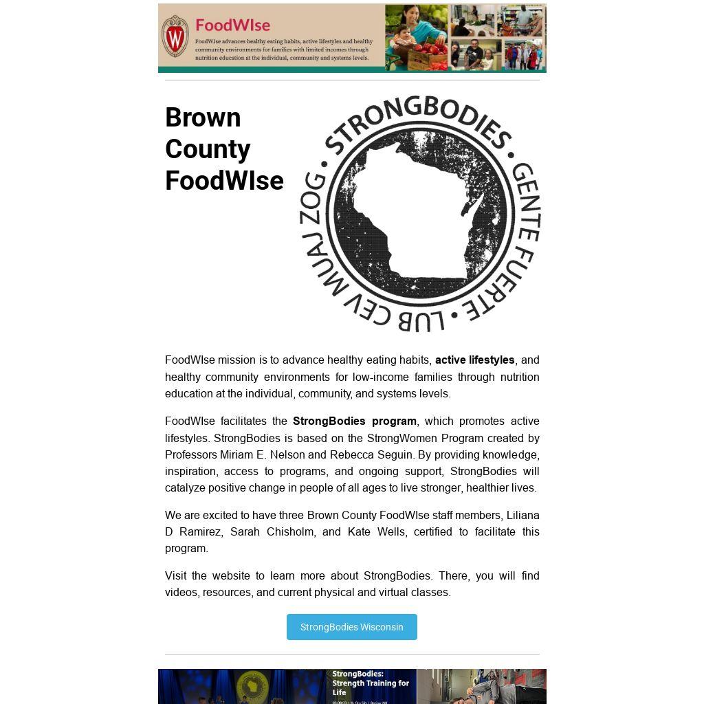 FoodWIse Brown County will be offering Strong Bodies at the ADRC this fall, follow us on Facebook for updates