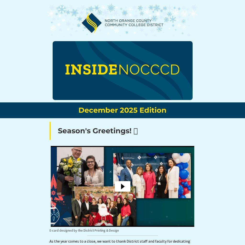 As the year comes to a close, we want to thank District staff and faculty for dedicating their time and energy towards providing students with quality education and support for the year 2025. Warm holiday wishes from NOCCCD!