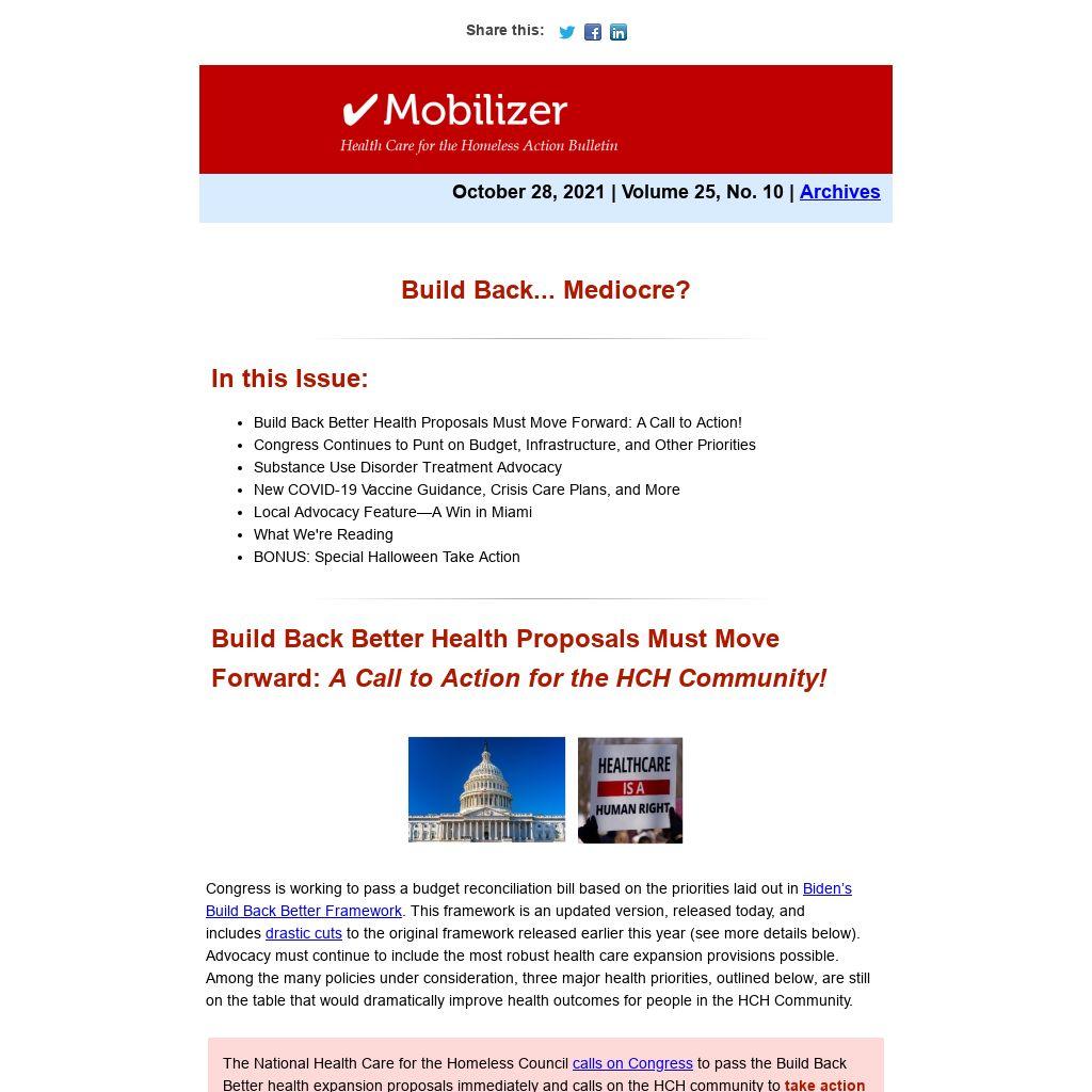 | Build Back Better Health Proposals Must Move Forward: A Call to Action for the HCH Community!