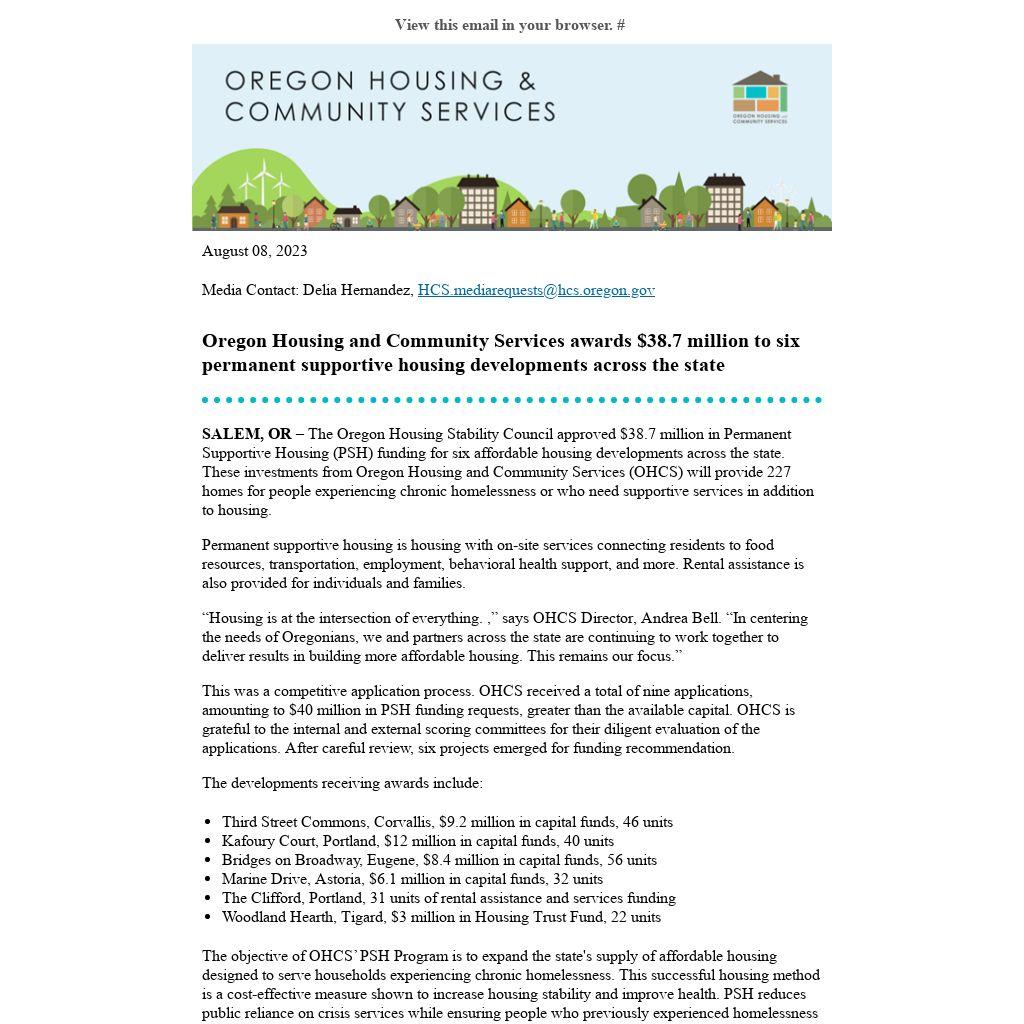“Housing is at the intersection of everything. ,” says OHCS Director, Andrea Bell. “In centering the needs of Oregonians, we and partners across the state are continuing to work together to deliver results in building more affordable housing. This remains our focus.”
