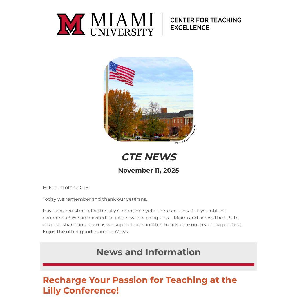 Have you registered for the Lilly Conference yet? There are only 9 days until the conference! We are excited to gather with colleagues at Miami and across the U.S. to engage, share, and learn as we support one another to advance our teaching practice. Enjoy the other goodies in the News!
