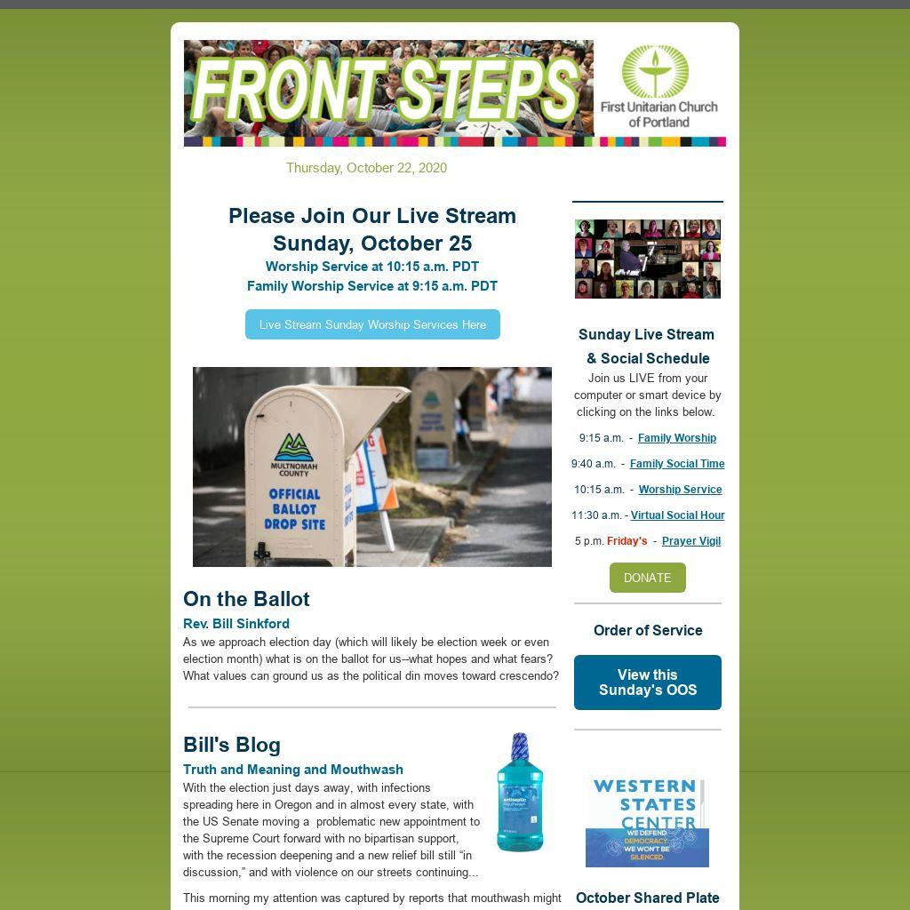 Have a Submission for E-News?If you have a submission you would like published in our weekly Front Steps (E-News), please submit it here with subject line “For E-News.”