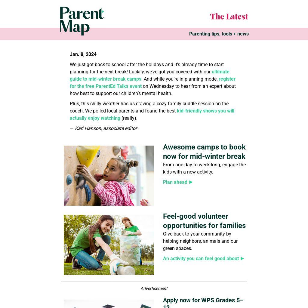 We just got back to school after the holidays and it’s already time to start planning for the next break! Luckily, we’ve got you covered with our ultimate guide to mid-winter break camps. And while you’re in planning mode, register for the free ParentEd Talks event on Wednesday to hear from an expert about how best to support our children’s mental health.