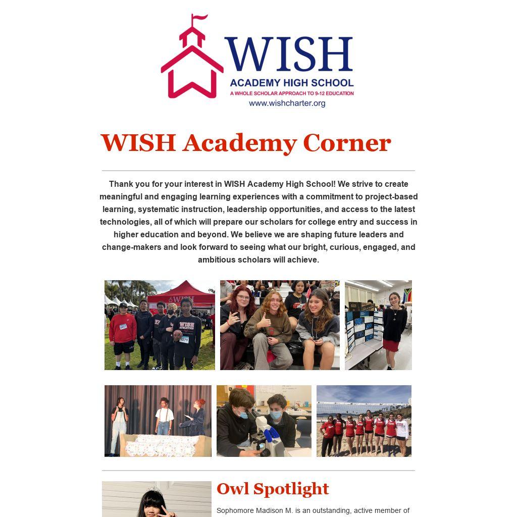 Thank you for your interest in WISH Academy High School! We strive to create meaningful and engaging learning experiences with a commitment to project-based learning, systematic instruction, leadership opportunities, and access to the latest technologies, all of which will prepare our scholars for college entry and success in higher education and beyond. We believe we are shaping future leaders and change-makers and look forward to seeing what our bright, curious, engaged, and ambitious scholars will achieve.