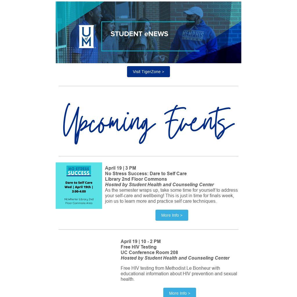 | April 24 | 3:30 PM Wellness Session with Mr. and Ms. UofM UC Shelby Room Hosted by Career Services