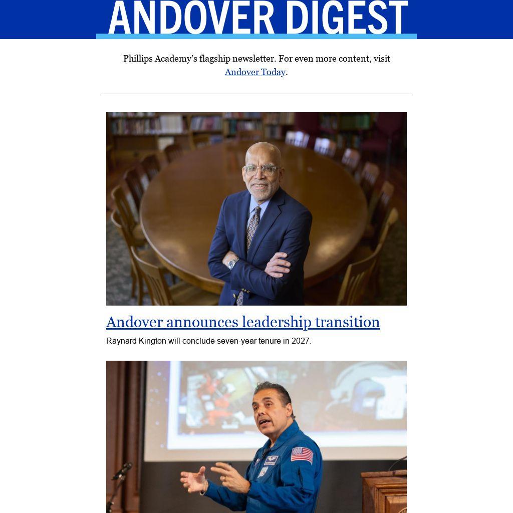 Phillips Academy’s flagship newsletter. For even more content, visit Andover Today.