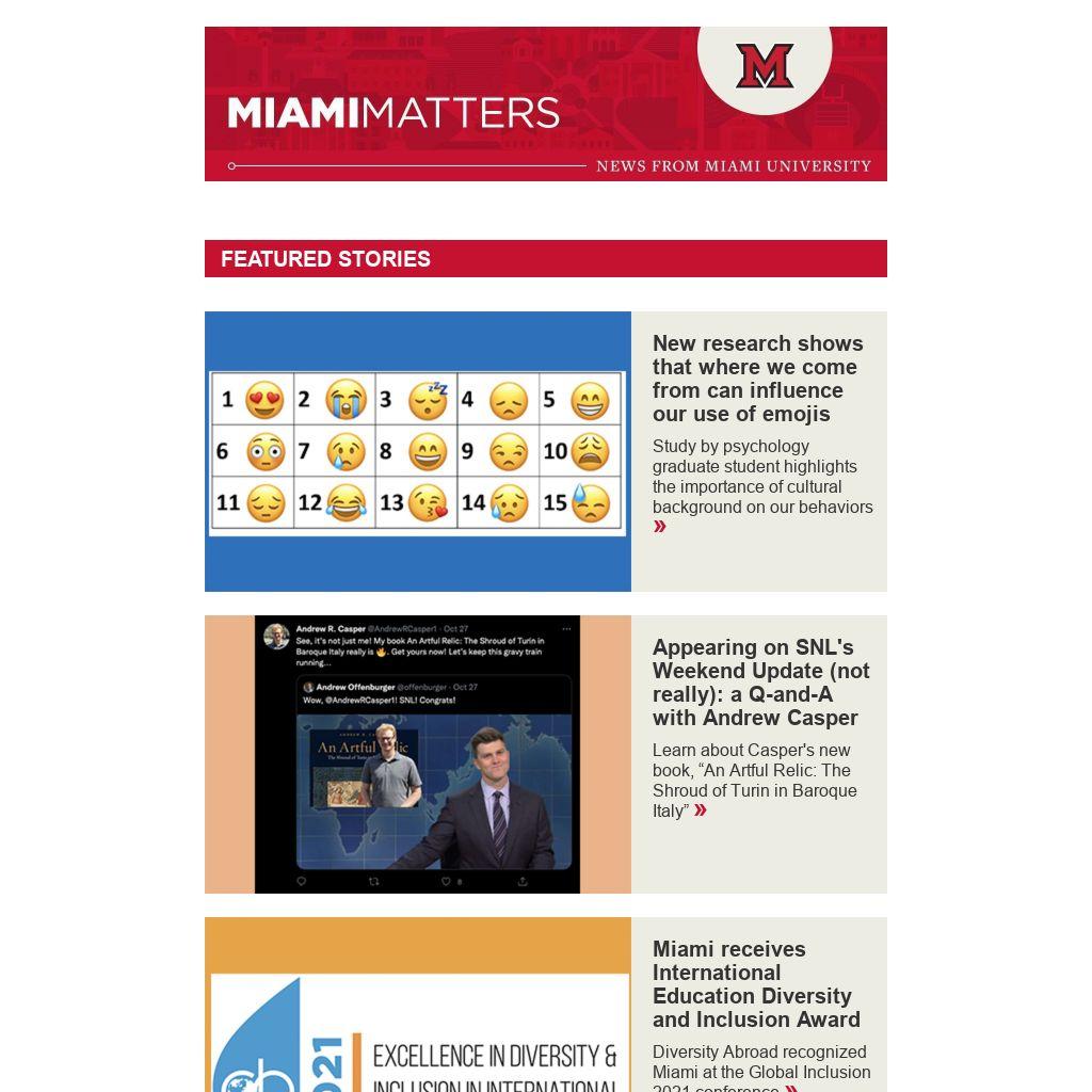 Miami's Sustainability highlights; emoji use, Andrew Casper's new book