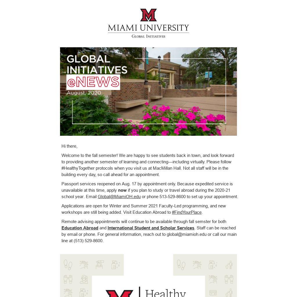 Global Initiatives is proud to be part of First 50 Days, an extended period of transition programming open to all Miami students. Featuring workshops and open houses with campus departments, information about getting involved, and entertainment, First 50 Days is a time when many students build connections, momentum, and belonging on campus.
