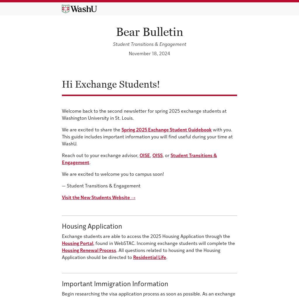 Welcome back to the second newsletter for spring 2025 exchange students at Washington University in St. Louis.