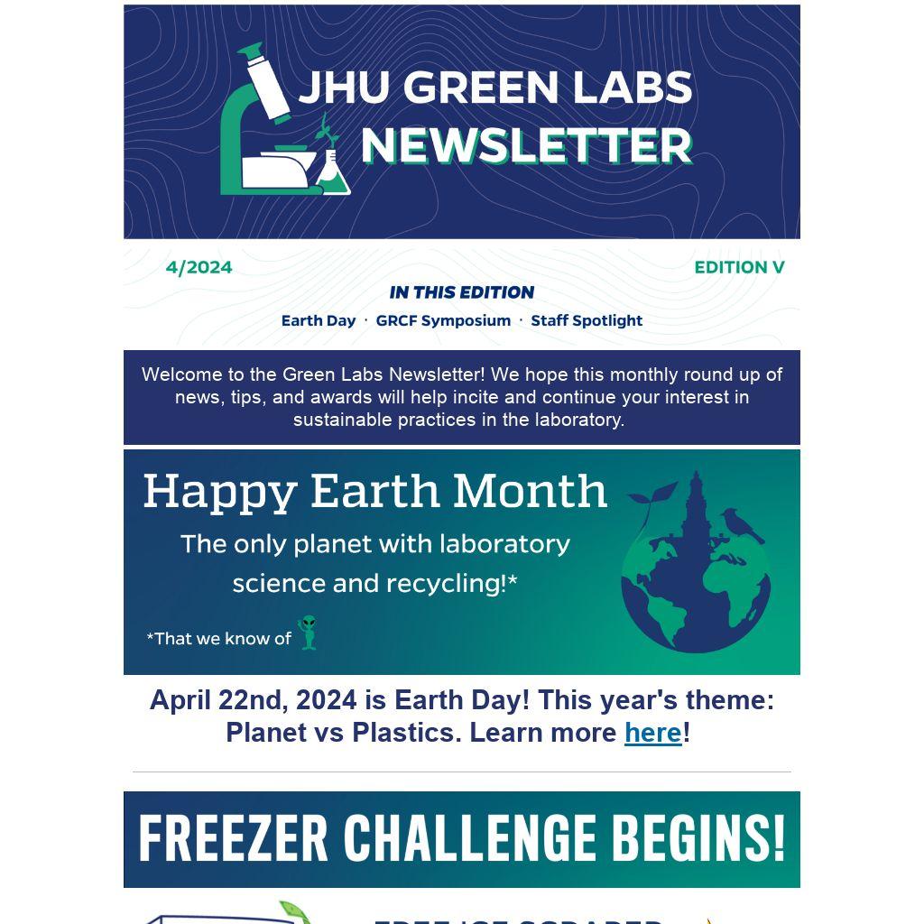 Welcome to the Green Labs Newsletter! We hope this monthly round up of news, tips, and awards will help incite and continue your interest in sustainable practices in the laboratory.
