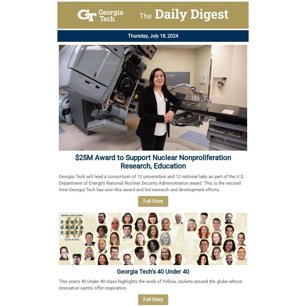Georgia Tech will lead a consortium of 12 universities and 12 national labs as part of the U.S. Department of Energy’s National Nuclear Security Administration award. This is the second time Georgia Tech has won this award and led research and development efforts.