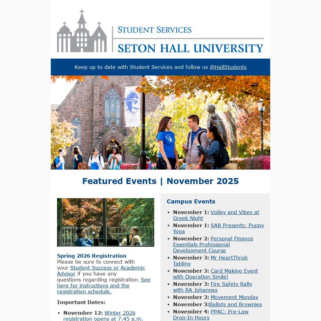 On Veterans Day, Seton Hall will host various activities honoring military veterans and the veteran’s community. Click here to view additional events throughout the day. Registration is optional but encouraged. Click here to register for the ceremony and/or the keynote discussion.