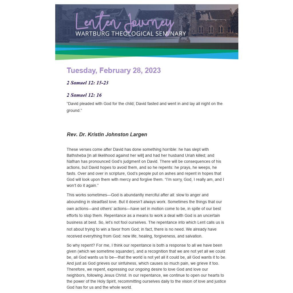 This works sometimes—God is abundantly merciful after all: slow to anger and abounding in steadfast love. But it doesn’t always work. Sometimes the things that our own actions—and others’ actions—have set in motion come to be, in spite of our best efforts to stop them. Repentance as a means to work a deal with God is an uncertain business at best. So, let’s not fool ourselves. The repentance into which Lent calls us is not about trying to win a favor from God; in fact, there is no need. We already have received everything from God: new life, healing, forgiveness, and salvation.