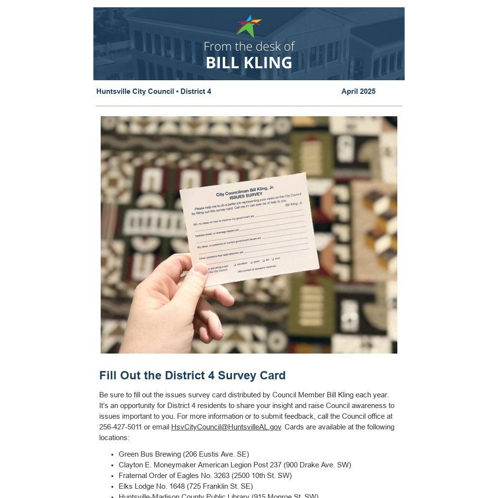 April 21: D4 Office Hours, 6-7 p.m., Huntsville-Madison County Library, 915 Monroe St.