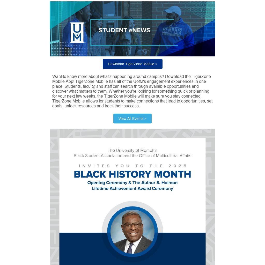Want to know more about what's happening around campus? Download the TigerZone Mobile App! TigerZone Mobile has all of the UofM's engagement experiences in one place. Students, faculty, and staff can search through available opportunities and discover what matters to them. Whether you're looking for something quick or planning for your next few weeks, the TigerZone Mobile will make sure you stay connected. TigerZone Mobile allows for students to make connections that lead to opportunities, set goals, unlock resources and track their success.