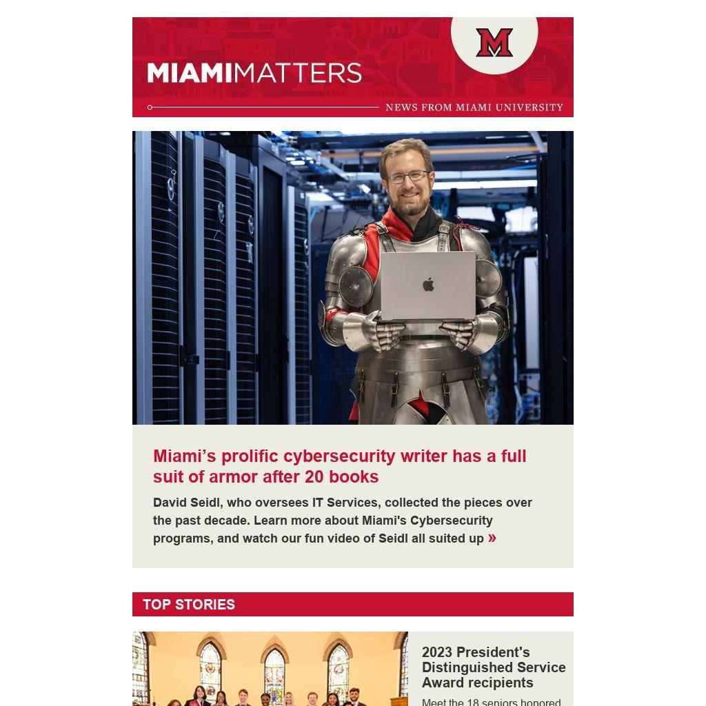 David Seidl, who oversees IT Services, collected the pieces over the past decade. Learn more about Miami's Cybersecurity programs, and watch our fun video of Seidl all suited up