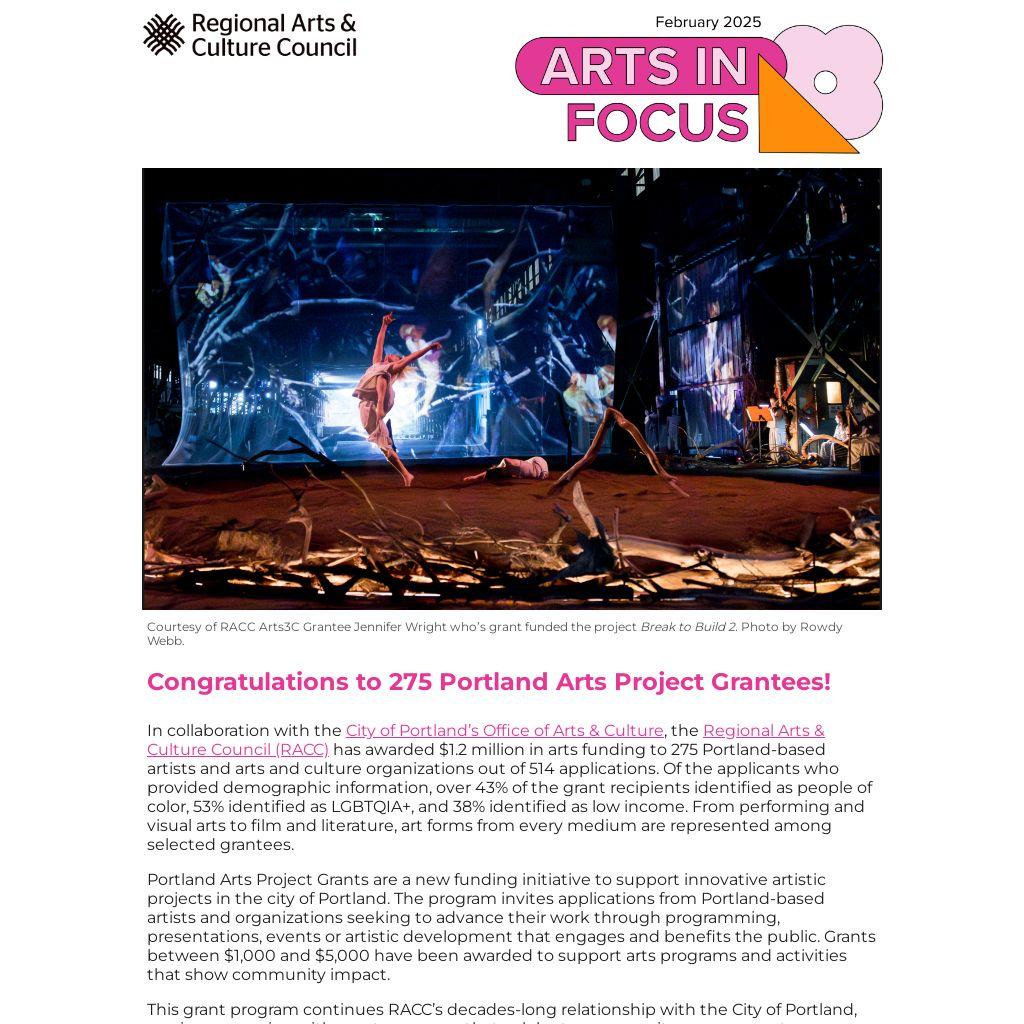 Congratulations to 275 Portland Arts Project Grantees! |