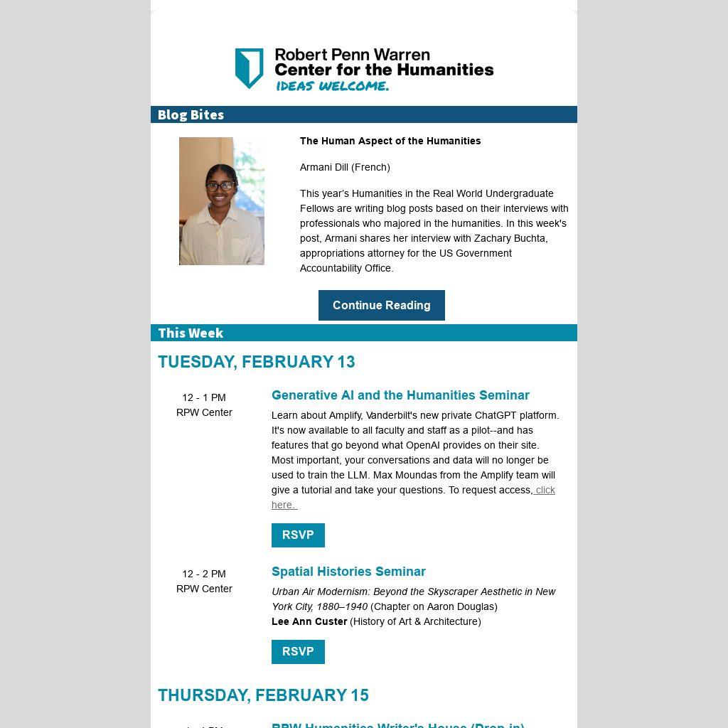 | Click here for the February schedule of the Vanderbilt Art Gallery's Art for Lunch series.