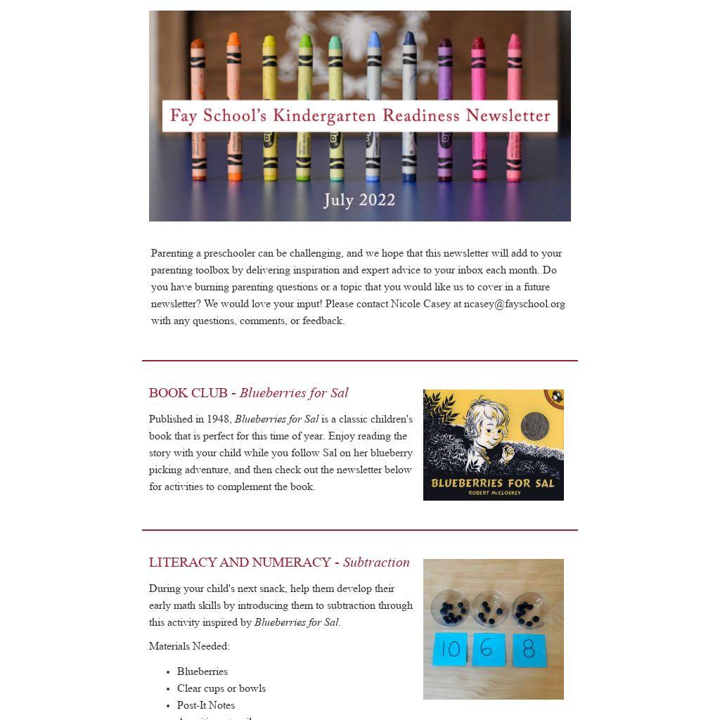 Kindergarten often lays the foundation for a child's entire learning experience. At Fay, our small class size and individualized approach helps each kindergartener establish the skills they will need for a successful educational journey. Our teachers focus on each child’s literacy, numeracy, science understanding, and social-emotional development, supported by a team of expert specialists who coordinate instruction in art, music, French, and Spanish, and P.E. Our teacher also focus on fostering a love of learning, and they know that when students believe that their learning matters, they give their all.