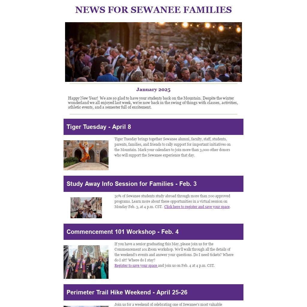 NEWS FOR SEWANEE FAMILIES