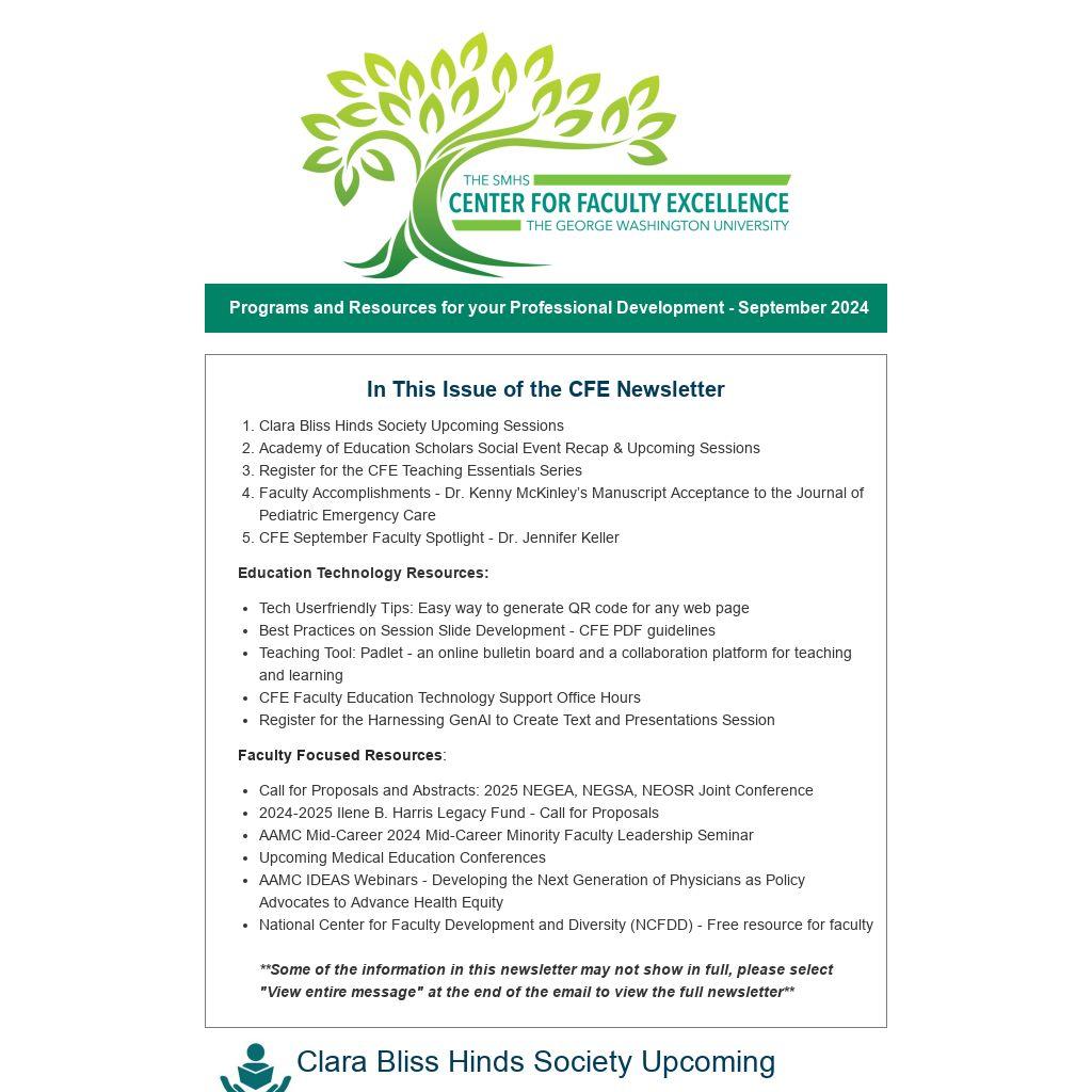 In This Issue of the CFE NewsletterClara Bliss Hinds Society Upcoming Sessions