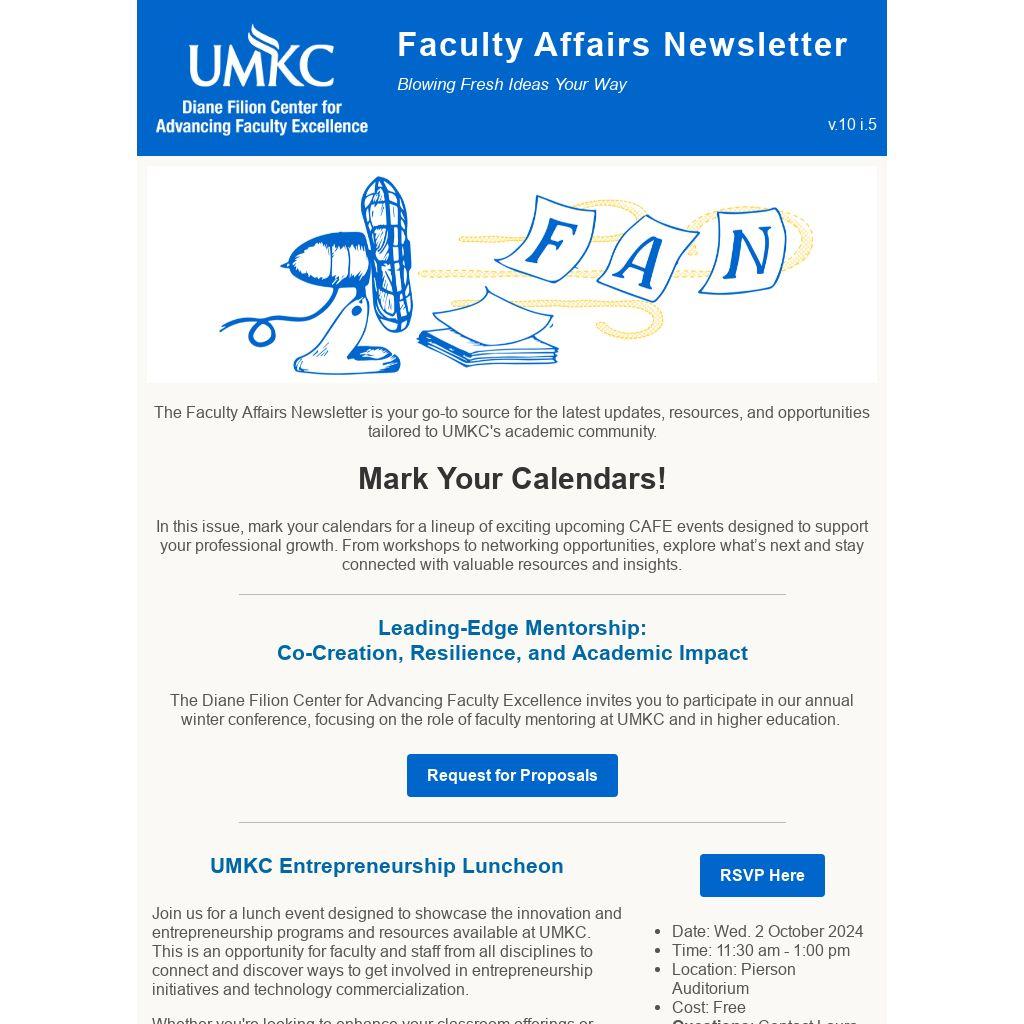 The Faculty Affairs Newsletter is your go-to source for the latest updates, resources, and opportunities tailored to UMKC's academic community.