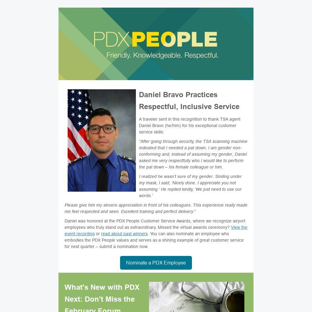 And so, we have a little good news: When the expansive, light-filled main terminal opens in 2024, you'll find PDX's iconic carpet in the pre-security “meet and greet” areas outside the security exits, along with a few other surprise locations we’ll share along the way.