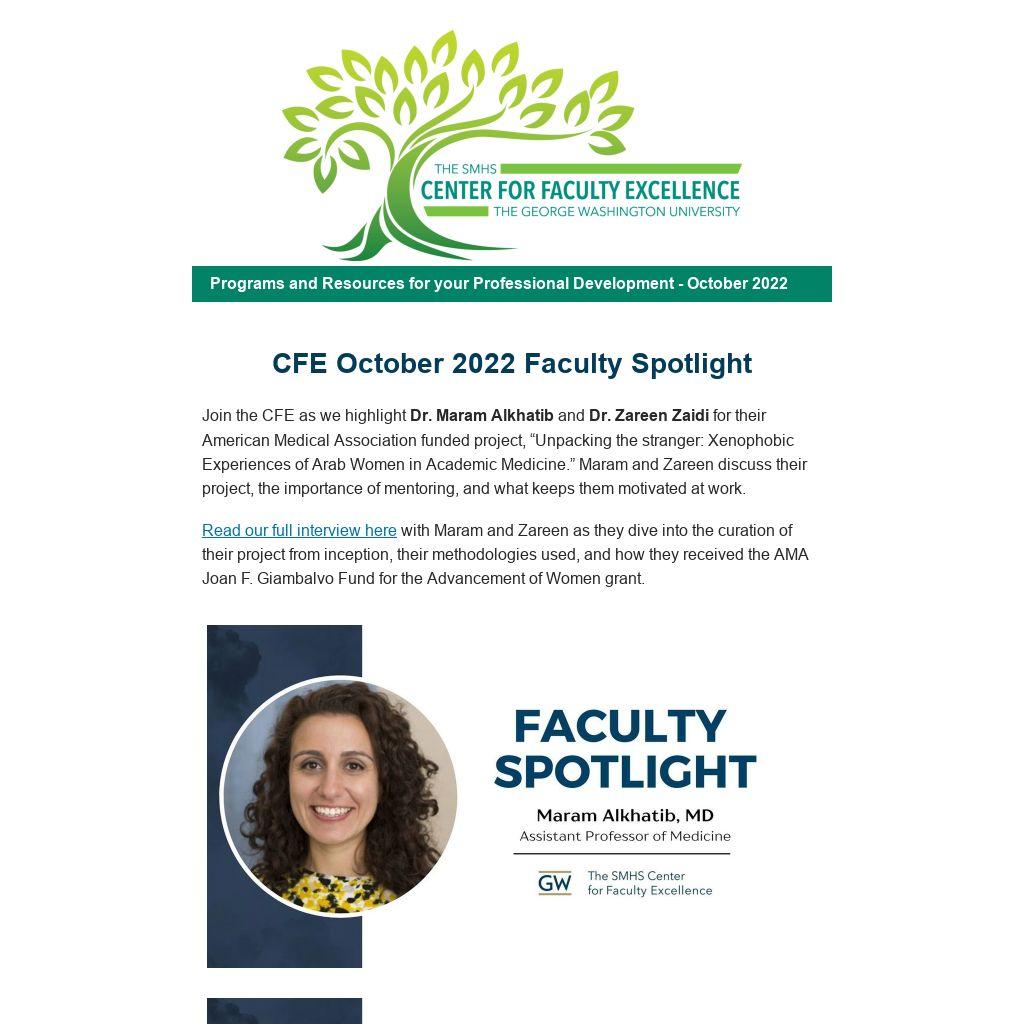 Join the CFE as we highlight Dr. Maram Alkhatib and Dr. Zareen Zaidi for their American Medical Association funded project, “Unpacking the stranger: Xenophobic Experiences of Arab Women in Academic Medicine.” Maram and Zareen discuss their project, the importance of mentoring, and what keeps them motivated at work.