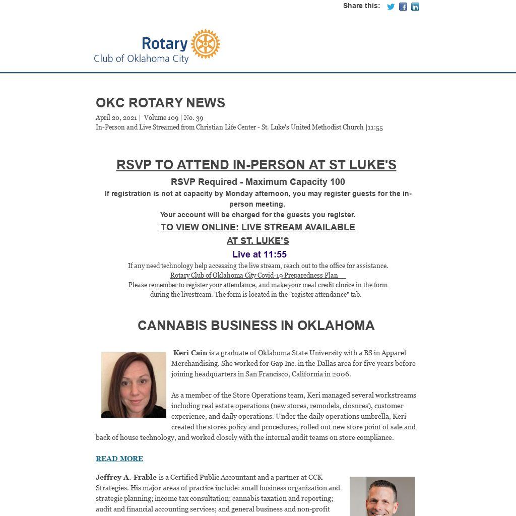 | OKC Rotary NewsApril 20, 2021 | Volume 109 | No. 39