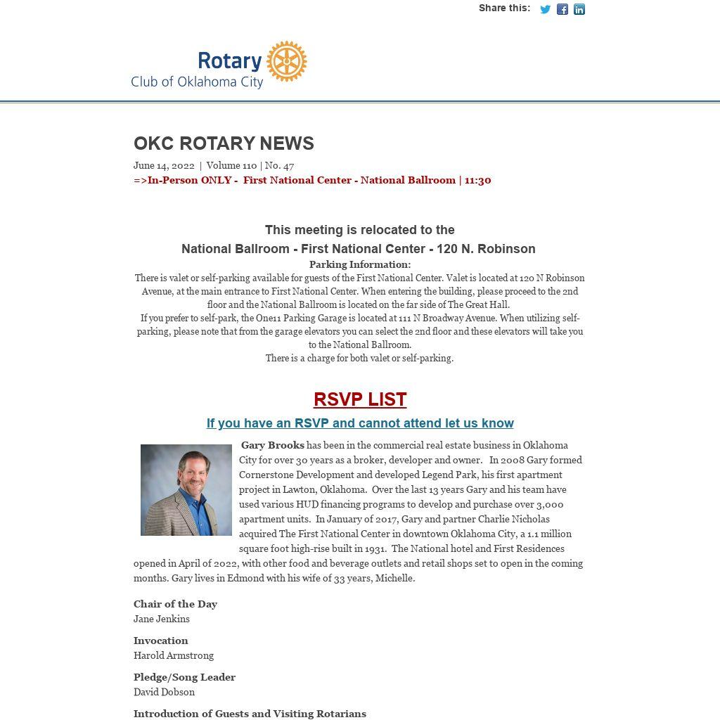 OKC Rotary NewsJune 14, 2022 | Volume 110 | No. 47