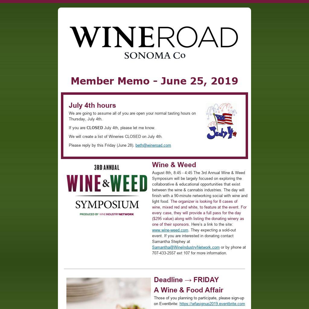 August 8th, 8:45 - 4:45 The 3rd Annual Wine & Weed Symposium will be largely focused on exploring the collaborative & educational opportunities that exist between the wine & cannabis industries. The day will finish with a 90-minute networking social with wine and light food. The organizer is looking for 8 cases of wine, mixed red and white, to feature at the event. For every case, they will provide a full pass for the day ($295 value) along with listing the donating winery as one of their sponsors.Here’s a link to the site: www.wine-weed.com. They expecting a sold-out event. If you are interested in donating contact Samantha Stephey at Samantha@WineIndustryNetwork.com or by phone at 707-433-2557 ext 107 for more information.