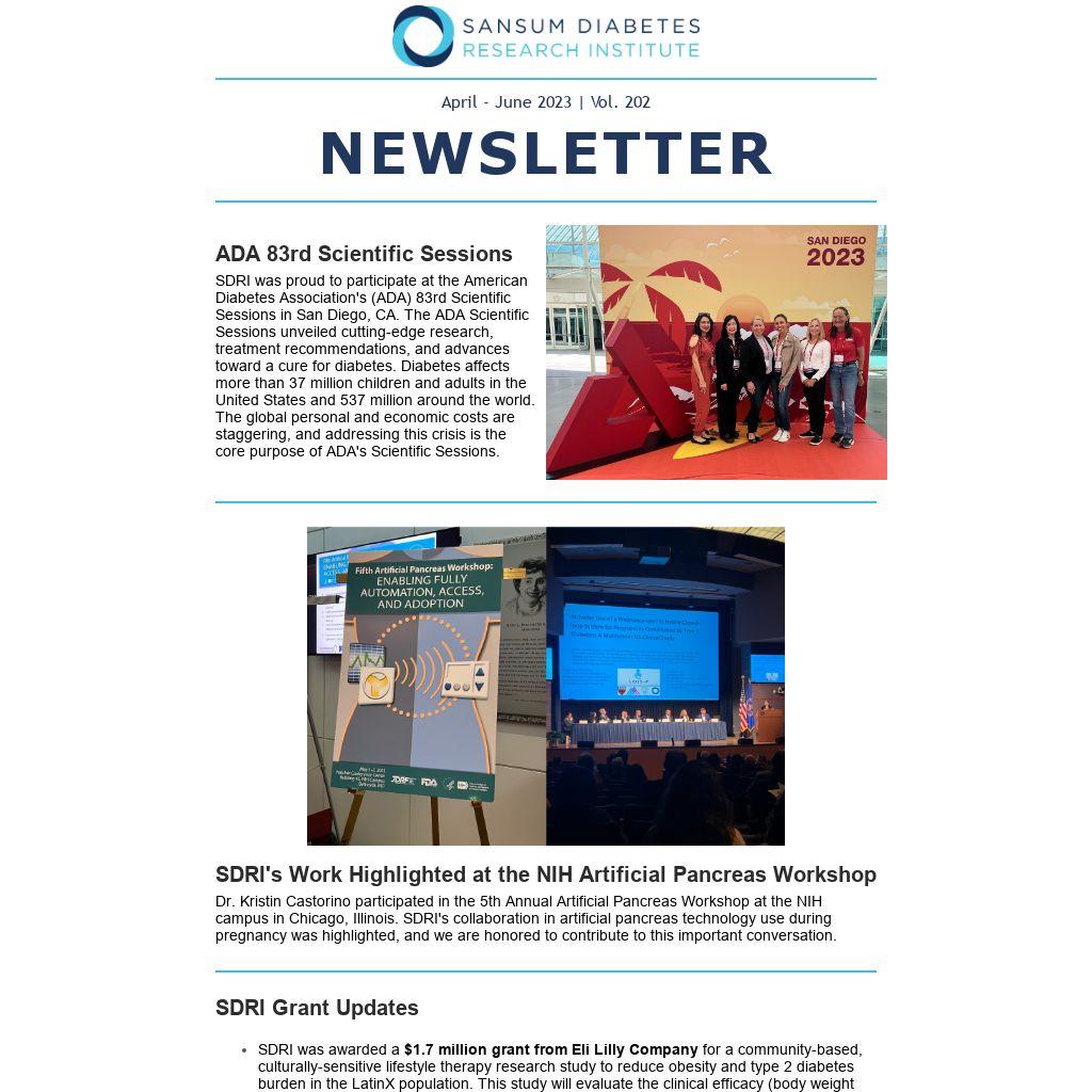SDRI was proud to participate at the American Diabetes Association's (ADA) 83rd Scientific Sessions in San Diego, CA. The ADA Scientific Sessions unveiled cutting-edge research, treatment recommendations, and advances toward a cure for diabetes. Diabetes affects more than 37 million children and adults in the United States and 537 million around the world. The global personal and economic costs are staggering, and addressing this crisis is the core purpose of ADA's Scientific Sessions.