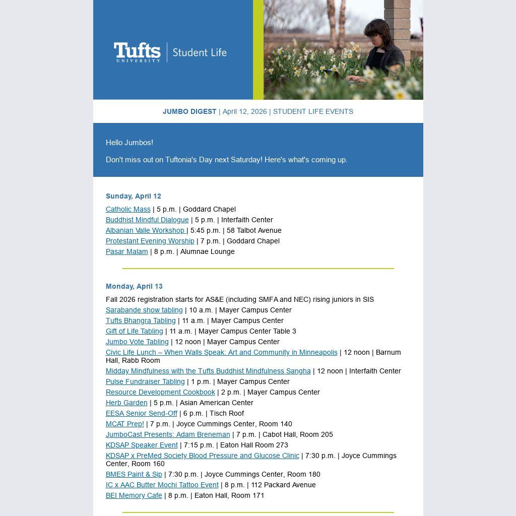 JUMBO DIGEST | April 12, 2026 | STUDENT LIFE EVENTS | |
